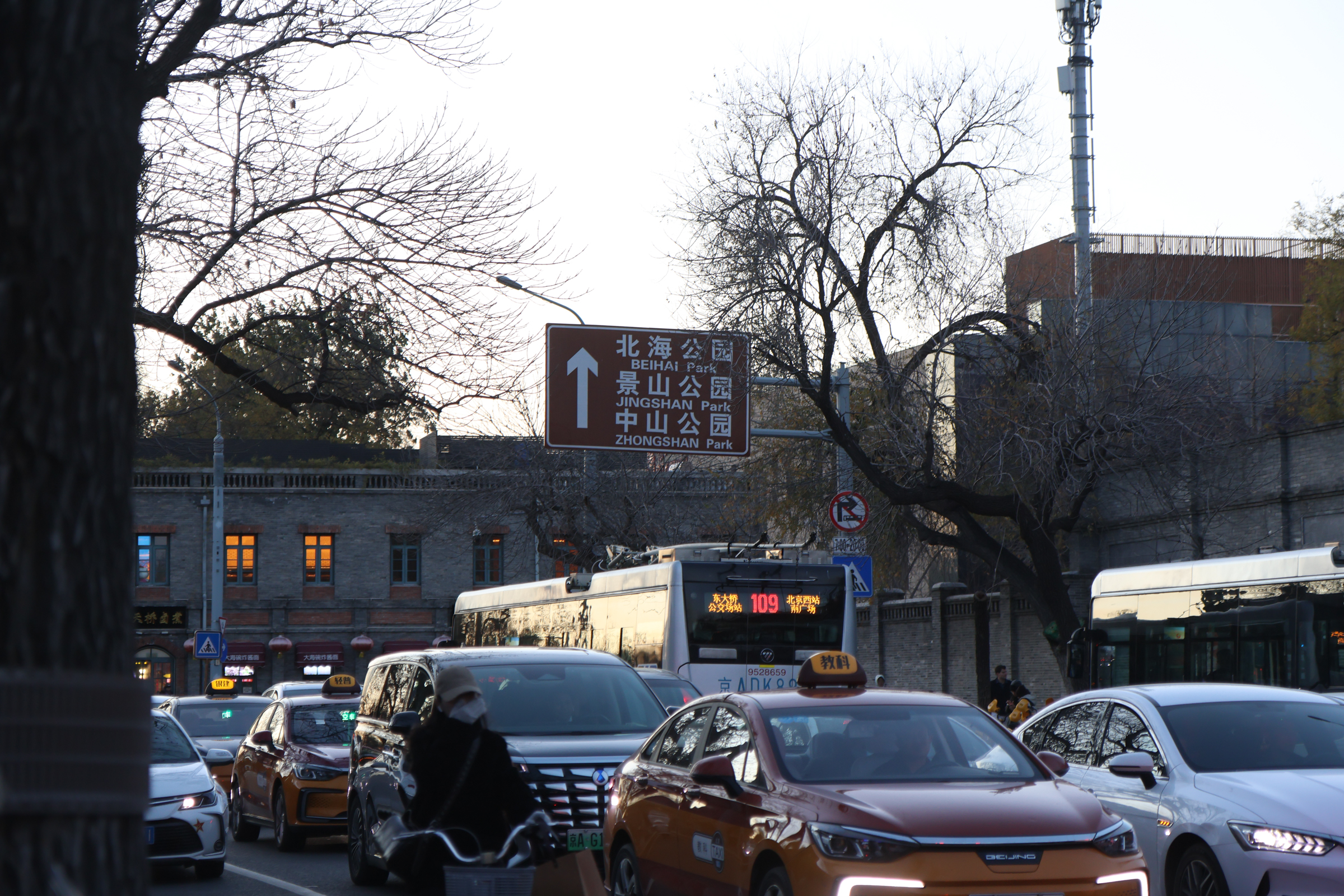 Jingshan Park is just north of the Forbidden City, while Beihai Park, Beihai Bridge and the Middle Sea are seen as you continue further West on Jignshan Front Street to Wenjin Street.